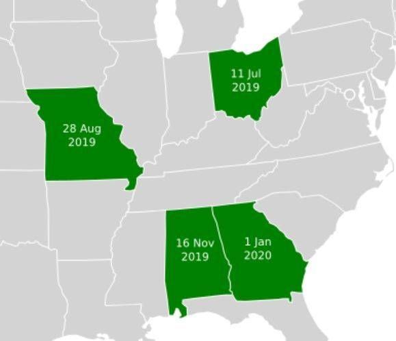 美国仅有4个州通过类似法案 图片来源:维基百科