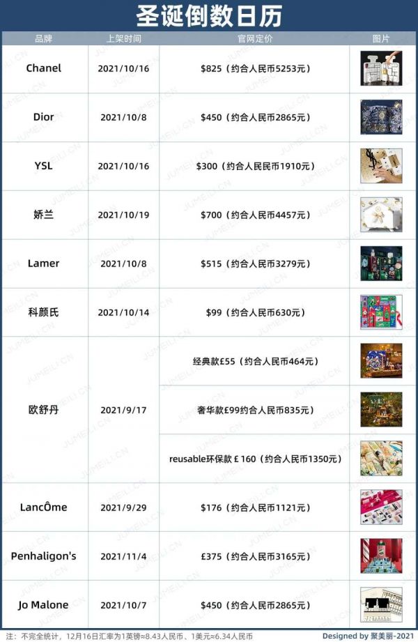 △2021年部分国际品牌推出的圣诞日历礼盒