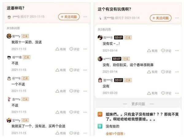 然而,面对高频率的美妆盲盒联名产品,消费者不买账了。有不少消费者表示审美疲劳,“天天出美妆联名,干脆泡泡玛特你开个美妆公司好了”“品牌是创意枯竭了吗,动不动就出个盲盒联名”。还有消费者表示联名礼盒“套路深”,“以为买产品送盲盒玩偶,没想到就是换个包装而已,无语。”某网友曾在淘宝评论中如此吐槽道。