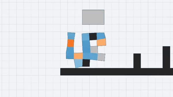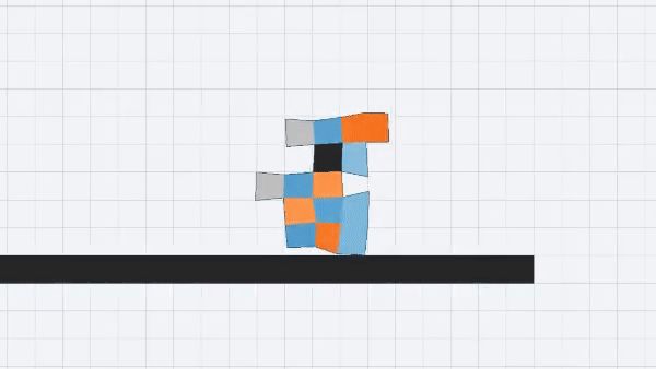 在Evolution Gym里,每个形态都用不同的大脑运行,系统会根据执行某种任务的好坏进行评分,如向前行走或投掷块。