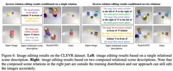 此外,该系统还可以反向工作——给定一张图像,它可以找到与场景中对象之间的关系相匹配的文本描述。该模型还可通过重新排列场景中的对象来编辑图像,使它们与新的描述相匹配。