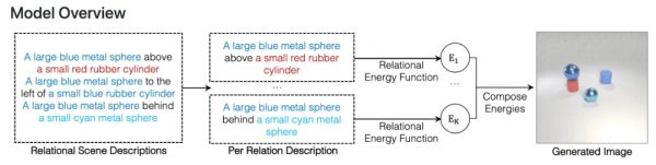 以往的一些系统可能会从整体上获取所有关系,并从描述中一次性生成图像。然而这些模型不能真正适应添加更多关系的图像。相比之下,该研究的方法将单独的、较小的模型组合在一起,能够对更多的关系进行建模并适应新的关系组合。