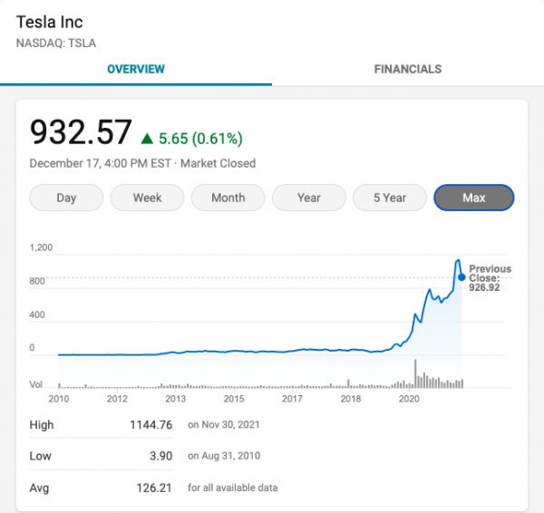 特斯拉股价走势
