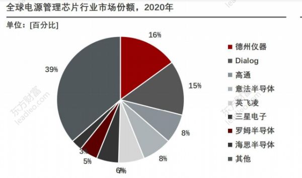 根据芯朋微招股说明书,2019年全球电源管理芯片市场上,全球前五大电源管理芯片供应商分别为德州仪器、Dialog、高通、意法半导体、英飞凌,CR5达46%,而截至2020年5月欧美企业更是在中国占据了80%以上的市场份额。