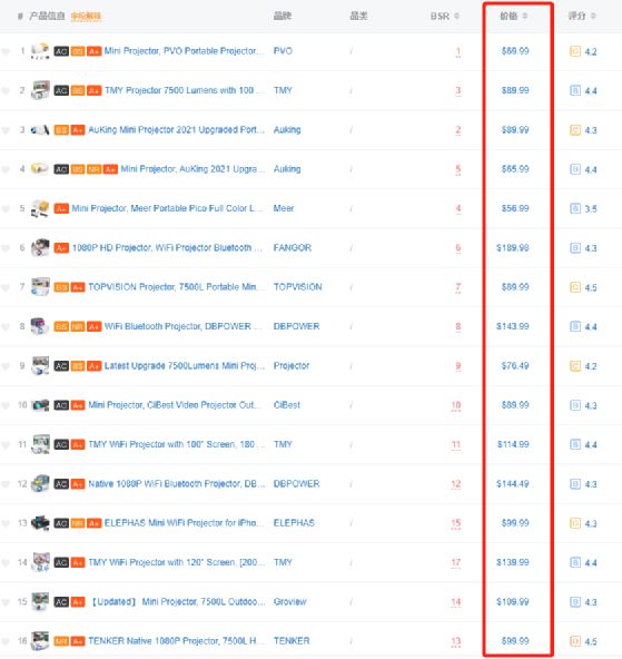 因为技术原因,中国投影仪品牌和卖家只能以“低价”取胜,按照100美金以下来考虑,那卖家的利润普遍很低了,要靠“薄利多销”来盈利,然而大部分销量又握在头部品牌手上,中小卖家想要高销量都很难。