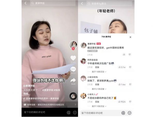 搞笑模仿达人@潇潇学姐 在抖音上拥有逾500万粉丝,她的内容主要是模仿年轻、中年和资深老师在面对各种课堂状况时的不同反应。