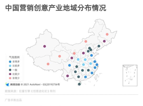 从地域分布来看,创意行业也不再聚集于北上广深等一线城市,包括江苏、浙江、山东、四川、福建在内的其他地区也开始展现出蓬勃生机。