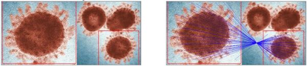 就像是这样,经过旋转、拉伸和缩放之后的图片,人眼或许无法辨认,但AI能看到数百个相似的特征: