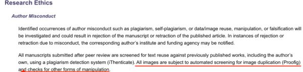 官方网站上也已经写明:提交手稿中的所有图像都需要通过AI软件进行筛选。