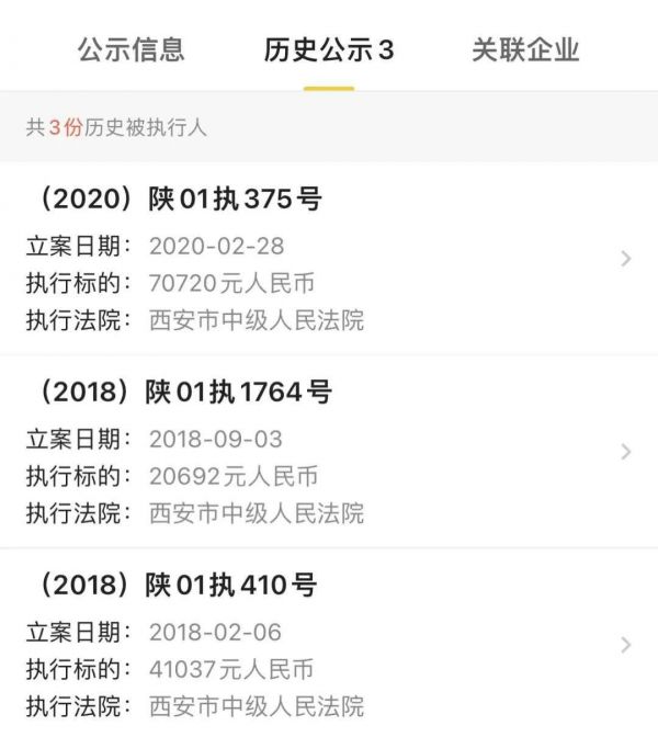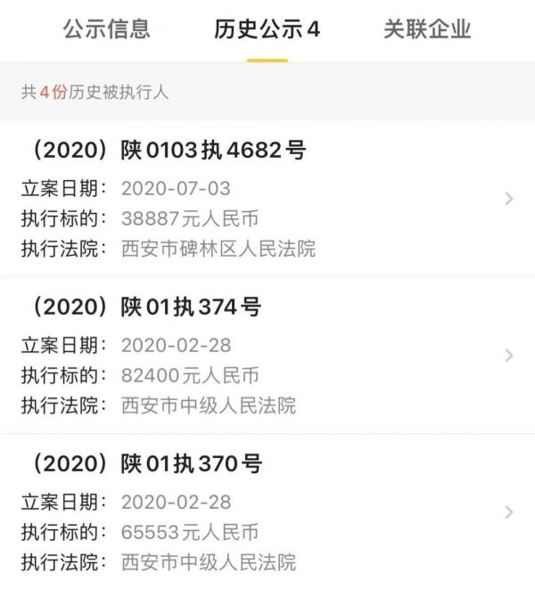 而真爱范特西控股股东真爱股份则同样于2020年2月28日被西安市中级人民法院列为被执行人,执行标的分别为82400元和65553元;2020年7月3日被执行38887元。