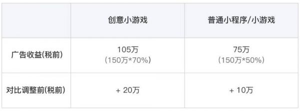 小程序(小游戏)流量主的收入分成比例整体有了更优化的调整。一、创意小游戏,单日广告收入流水200万以内的部分,开发者可获其中70%;单日广告收入流水超过200万的部分,开发者可获其中50%,不设上限。二、普通小程序或其他小游戏,开发者按单日广告收入流水的50%比例分成,不设上限。