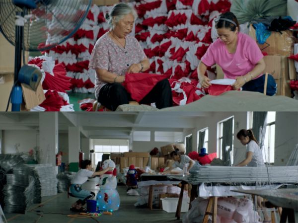 去年年初的鹿特丹电影节上,一部来自塞尔维亚导演马拉登·科瓦切维奇的纪录片《圣诞快乐,义乌》登上银幕。片子将镜头对准了圣诞商品工厂的工人,他们或是背井离乡来义乌打工的年轻人,或是附近村庄的老人,正是他们亲手缝制、操作机器,生产出了这些让大洋彼岸的人们感到“幸福”和“温暖”的东西。