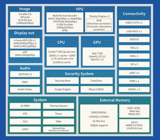 瑞芯微用于VR领域的主芯片主要有两个,RK3288和RK3399,这两款芯片的发布时间都比较早,RK3288是2014年发布的,RK3399是2016年发布的。RK3288采用了ARMCortex-A17架构的处理器,配置Mali-T76X系列GPU,支持硬解H.265编码以及4K影片,而且支持HDMI2.0接口,能与4K电视机搭配使用。RK3399的CPU拥有两颗Cortex-A72大核心,四颗Cortex-A53小核心,最高主频可达2.0GHz,是一颗64位六核处理器,GPU方面,RK3399集成了ARM新一代高端图像处理器Mali-T860@MP4 GPU,集成更多带宽压缩技术:如智能迭加、ASTC、本地像素存储等,还支持更多的图形和计算接口。