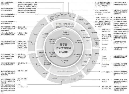 根据《元宇宙通证》一书,元宇宙有六大支撑技术BIGANT,分别为区块链技术(Blockchain)、交互技术(Interactivity)、电子游戏技术(Game)、人工智能技术(Ai)、网络及运算技术(Network)、物联网技术(IOT)。在这之中,区块链技术往往被视为元宇宙的核心支点。