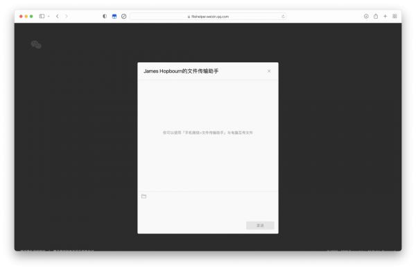 在浏览器中打开 https://filehelper.weixin.qq.com/ 并扫码登录即可使用网页版文件传输助手,登录之后会显示如下图的对话框。与客户端的「文件传输助手」一样,你只需要输入文字、拖动文件就能在电脑和手机之间相互传输,几乎没有上手门槛。