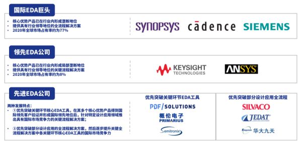 纵观全球EDA市场,各企业间主要可以分为三个梯队:国际EDA巨头、领先EDA公司、先进EDA公司。