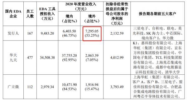 另一条技术路线的华大九天,虽然海外市场上的竞争力不如概伦电子,但却依靠顺畅打通的全产业链条产品系统,获得了大量国内客户的青睐,总营收水平远高于概伦电子。