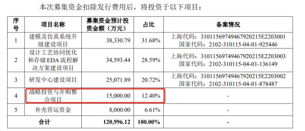 在本次招股书中,概伦电子也明确,所融资的12.1亿资金中,将会拿出1.5亿元用于战略投资与并购整合。