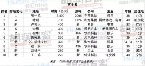 十几年后, 许仰天凭借400亿元的财富值,以第3名的高位,直接闯入今年最新的《2021胡润U40青年企业家榜》。