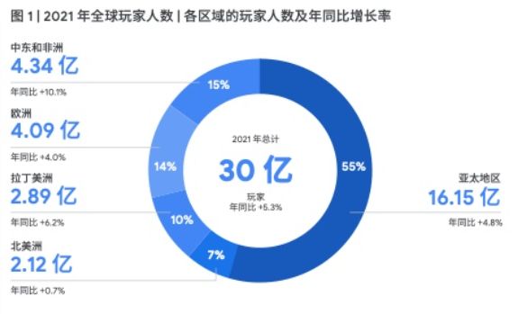 从大盘数据来看,12月底newzoo与google的报告显示,2021年游戏玩家总计30亿,比去年仅增长了5.3%。12月份最新的newzoo报告显示,游戏市场收入1803亿美元,同比去年仅增长了1.4%。