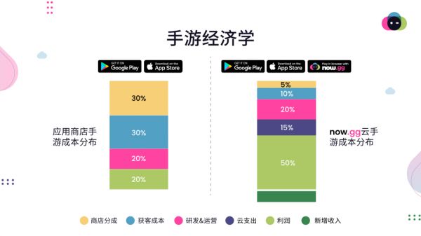 今年11月,移动云公司now.gg宣布,通过now.gg云支付渠道进行的内购充值将给予游戏开发者95%的分成,预计为开发商从付费用户带来的利润提升25%。