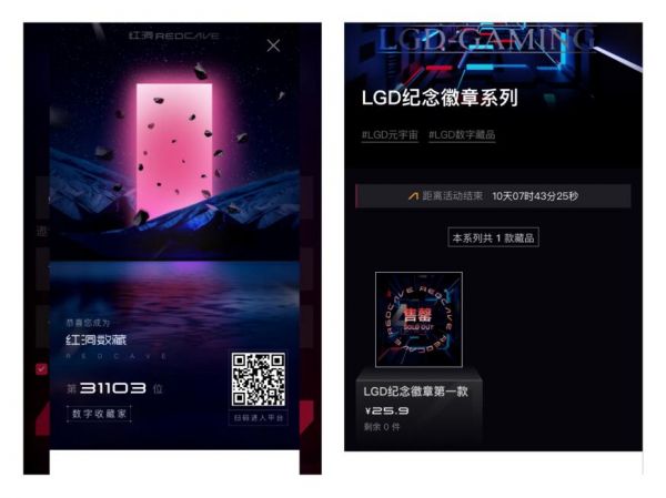 2021年12月21日,LGD电子竞技俱乐部在红洞数字藏品(下称:红洞数藏)平台发售进军元宇宙的第一个数字藏品系列——LGD纪念版系列徽章。