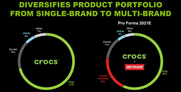 自创立以来,Crocs就不断通过收购来扩充自己的品类。