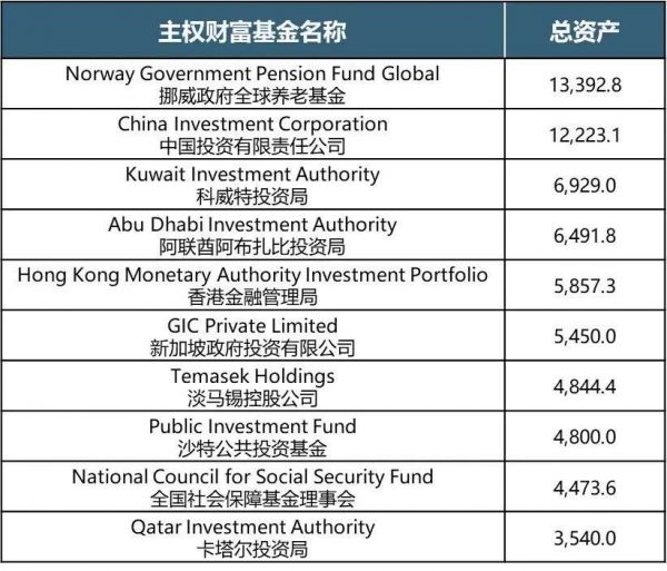 表:全球十大主权财富基金资管规模排名(单位:亿美元)