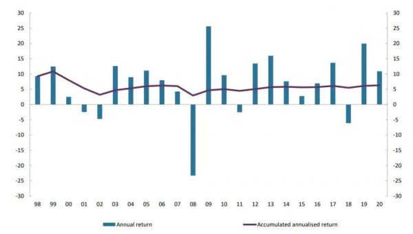 图:GPFG年度收益率和累计收益率