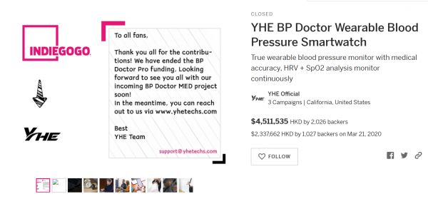据研和智能市场负责人Camel表示,在2020年初时,公司曾在海外众筹网站Indiegogo发起众筹,凭借BP Doctor Pro产品,募集到58万美元。2020年6月,产品在美国等地发售。通过查询可见,当前仍有国外用户通过该网站,向研和智能反馈产品使用过程中的体验、可优化的细节等。