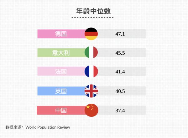 据世界银行2020年的数据统计,意大利的人口为5900万左右,且有70%的人口居住在城市当中,城市化占比略低于德国的77%,以及英国和法国的80%。此外,意大利同样是一个备受老龄化困扰的国家。根据世界人口综述(World Population Review)2021年的数据显示,意大利的年龄中位数为45.5岁,仅次于德国的47.1岁。