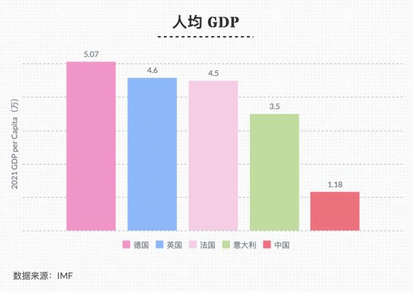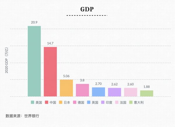 虽然在四大经济体中排末位,但意大利的整体经济实力并不算弱。根据世界银行2020年的数据统计,意大利的 GDP 约为1.88万亿,在全球排名第八,欧洲位列第四,仅次于德国、英国和法国。
