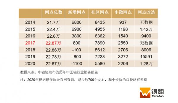 近年国内银行网点变化情况