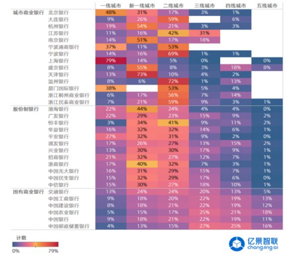 银行在各级城市分布占比