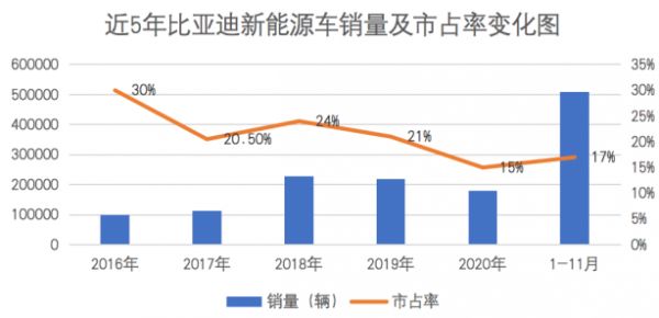 从2021年1月-11月的上险量来看,比亚迪的销量已经全面超过了2020年全年的销量。威尔森智能科技公司研究总监汤吉辉向出行一客(ID:carcaijing)解释称,这归功于技术研发的成果,DM-i技术、刀片电池提升了比亚迪的核心竞争力。接受采访时,业内专家无一例外都主动谈起DM-i技术,称此是比亚迪自研技术的标杆产品。