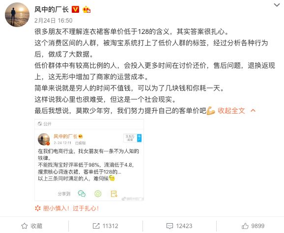 何谓“低价人群”?按照@风中的厂长 的说法,这个群体中有较高比例的人会投入更多时间在讨价还价、售后问题、退换返现上,这在无形中增加了商家的运营成本。