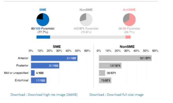 研究人员会随机给受试者出一些算术题,转移一下受试者的注意力。然后便进入到了精彩的记忆提取时间。受试者需要尽量回忆起这 308 个转瞬即逝的英语名词。根据神经元的电极记录,研究人员最终在大脑的海马区和内嗅皮层(entorhinal cortex)识别出 103 个在编码成功时放电频率具有显著特性的“相继记忆效应”(Subsequent memory effect,SME)神经元,其中包括前海马神经元 51 个(49.5%),后海马神经元 31 个(30.1%),中或未指定海马神经元 4 个(3.9%),内嗅皮层神经元 17 个(16.5%)。