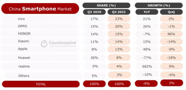 iPhone 13上市前夜:小米荣耀贴身肉搏,高端市场暗流涌动