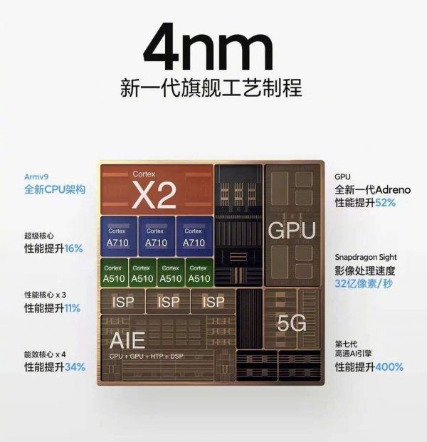 骁龙8 Gen 1芯片,图源雷军个人微博