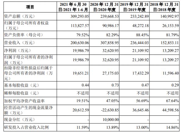 2018年至2021年上半年,萤石网络向包括海康威视、富瀚微、中国电科等关联方进行采购材料、商品的金额分别为9.6亿元、18.3亿元、2.66亿元、0.54亿元,占当期采购物料总额的比例为100%、99.57%、17.34%、9.46%。