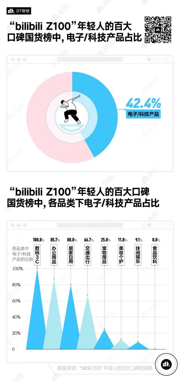 正好,B站在12月29日发布了“bilibili Z100”年轻人的百大口碑国货榜。这个榜以B站大数据平台“Z指数”数据为基础,综合了内容热度、用户互动率、弹幕正负评论等维度,以年轻人的真实口碑,评选出与生活息息相关的年度百大国货。