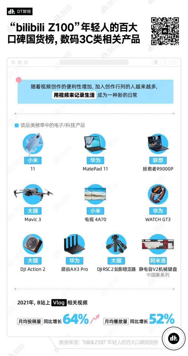 2021年,用数码产品记录生活成为趋势。这一年里,B站上的Vlog相关视频月均投稿量同比增长64%。不再满足于手机镜头的年轻人,像哆啦A梦一样,从口袋里掏出了一个拍摄宝库。