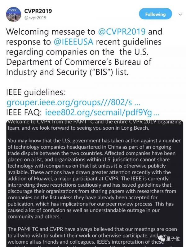 现在,CVPR 2019发表公开信,支持自由选择审稿人,从某种程度上来说,也是对华为的支持。