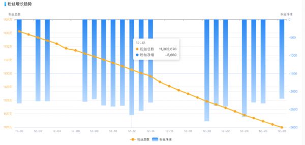 对此,音符传媒方表示,之所以将直播场次缩减,是看重了陈小春作为明星的影响力。显然,5000元的销售额证明了音符传媒的错误预判。从壁虎看看平台数据看到,近30天内,陈小春个人账号粉丝量一直在下降,其粉丝是否具有购买力更是无从考证。