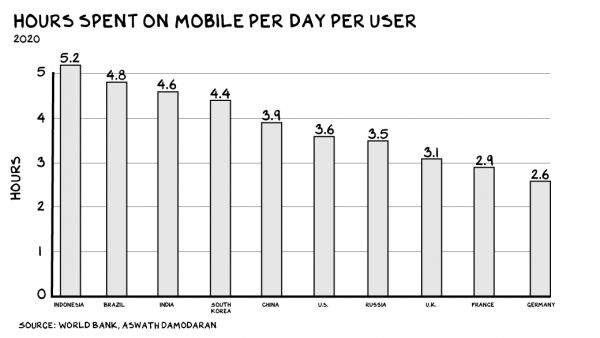 这个市场的拥挤有着充分的理由。超级应用市场是数字的铁王座。超级应用存在于移动设备上,而移动设备就是新兴市场的互联网。比方说,印度的手机用户数量是美国的三倍,印度人每天花在手机上的时间比美国人要多 17%。