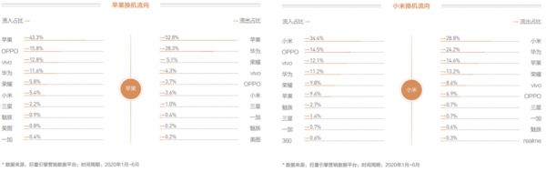 巨量引擎的一份报告显示,苹果用户换机流出中,较高比例转为华为用户,仅3.6%的用户流入到了小米阵营。