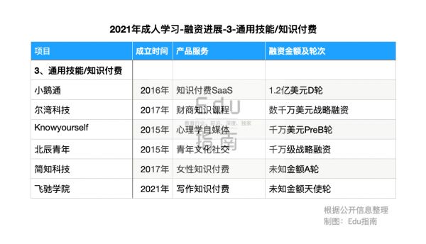 基于以上,面向成人的学习产品服务,尤其是职业专业技能提升方向,仍具备持续增长的市场需求与空间。未来,国内将有更多一级市场初创公司与二级市场公司进一步发展的机会,Edu指南将与大家一起持续关注。
