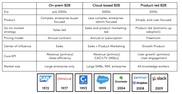 但我不会自大到说这些是全新的策略。但我确实认为这些趋势代表了一个明显的演变,由 Dropbox、Slack 与 Evernote 开创的那本经典的“产品导向增长”手册已经做出了修订,也许说不定还有点新东西出现……