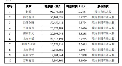 其中,林芝腾讯直接持有发行人10.4277%的股份;五源晨熹、五源晨驭及五源启兴作为一致行动人,合计直接持有发行人5.1852%的股份;经纬创腾及经纬创博作为一致行动人,合计直接持有发行人 10.0317%的股份。