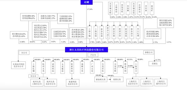 截至本招股说明书签署日,太美医疗的控股股东、实际控制人为赵璐,本次发行前直接持股比例为 17.2441%。前十大股东包括腾讯、五源、经纬等知名投资机构。